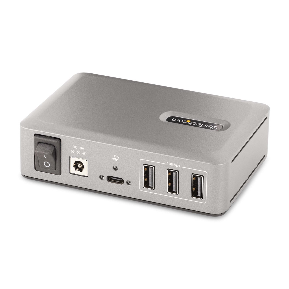 - USB 3.2 Gen 2 (10Gbps) expansion hub features a USB-C host connector with 10x downstream USB ports (8x USB-A, 2x USB-C)