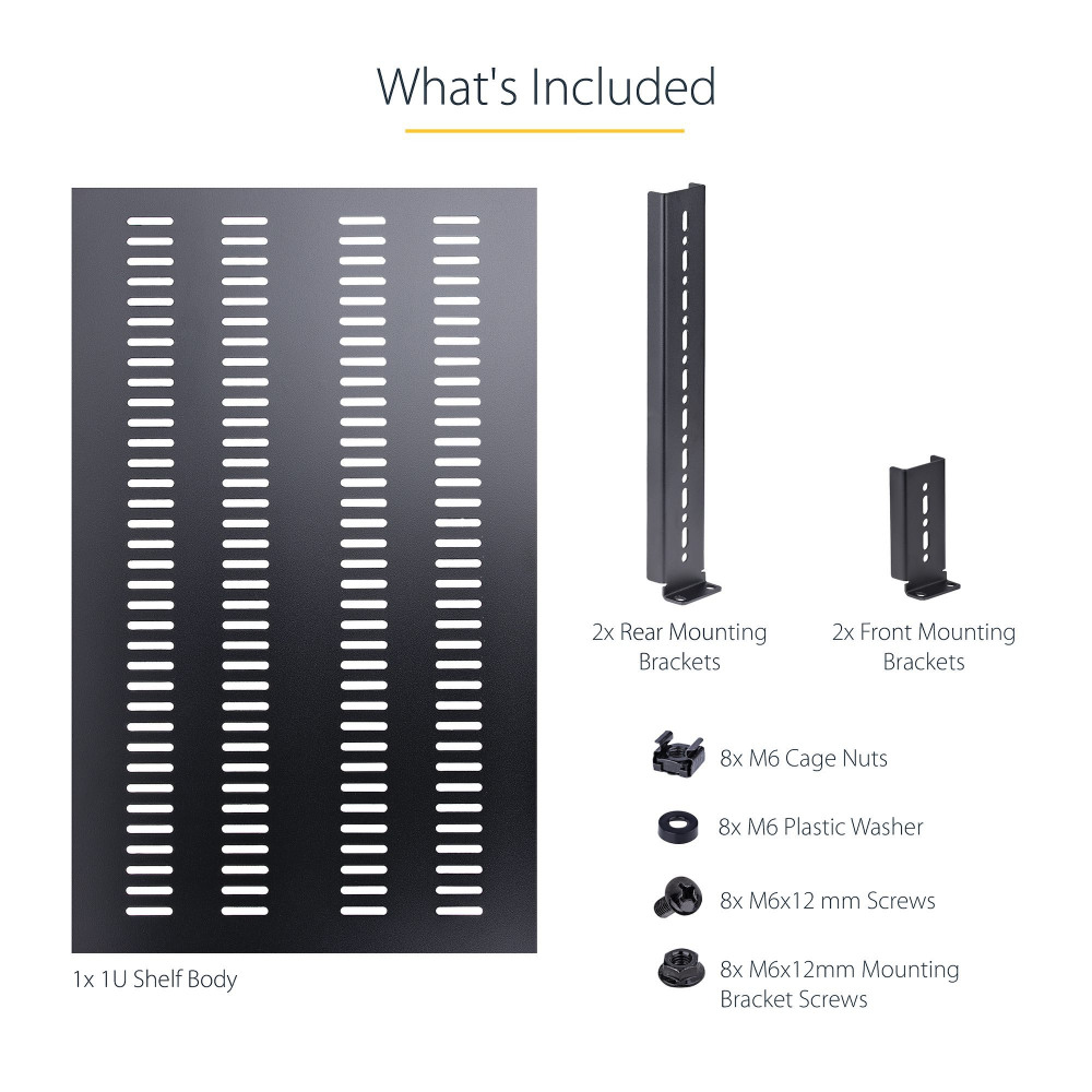 StarTech.com 1U 4-Post Adjustable Vented Server Rack Mount Shelf Maximum Weight 150kg