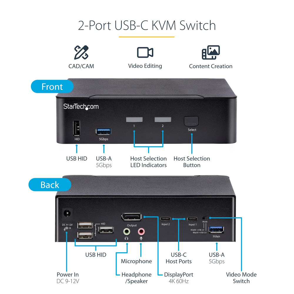 StarTech.com 2 Port USB C 4K DisplayPort KVM Switch