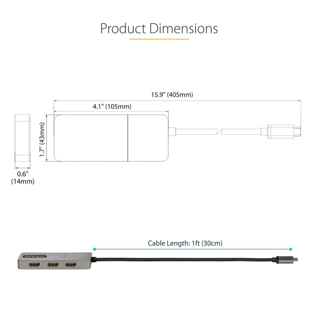 StarTech.com 3 Port USB C to HDMI 4K 60Hz MST Hub