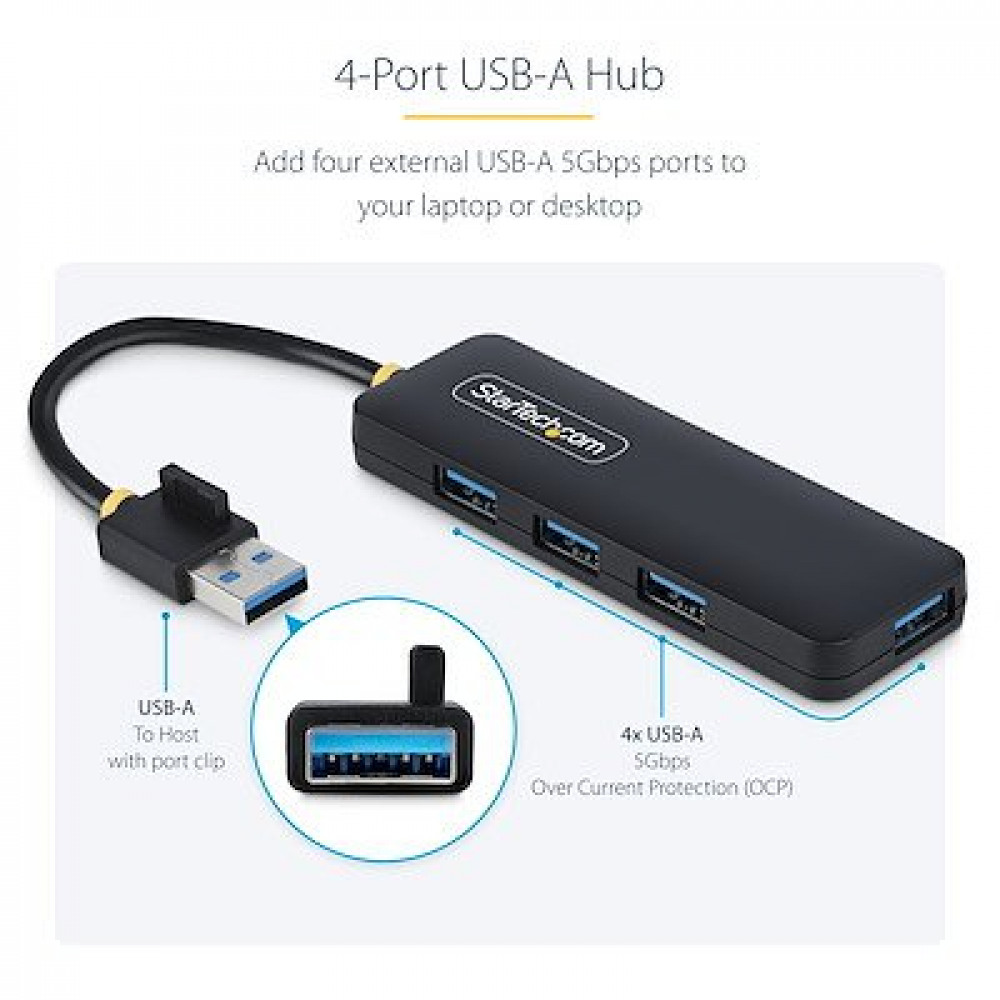 StarTech.com 4 Port USB A Hub; 5Gbps Bus Powered Travel Mini USB Hub