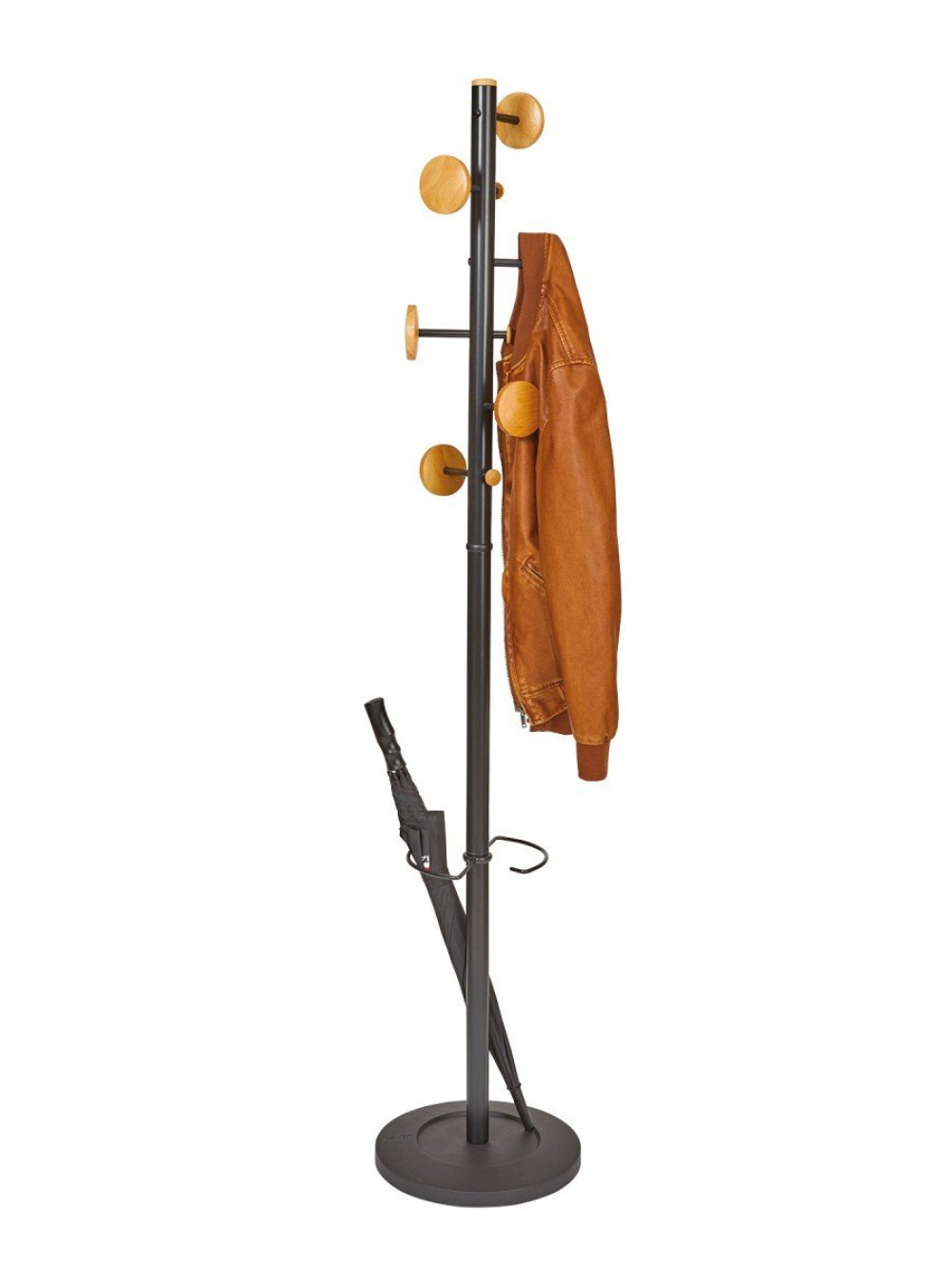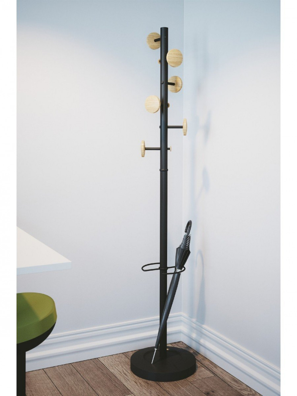 Alba Coat Stand 6 Pegs Plus 3 Mini Pegs Wood And Steel H175cm Black - PMMUSIC N
