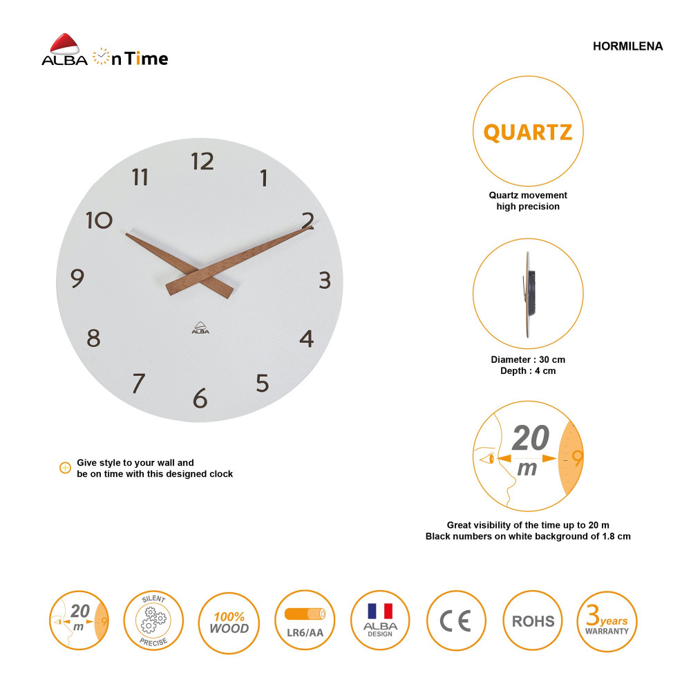 ALBA HORMILENA WALL CLOCK 30CM WLWH