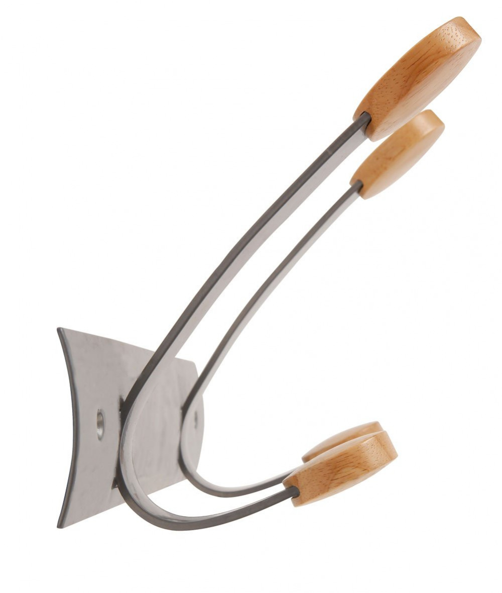 Alba Wall Coat Hook 2 Double Pegs Silver Grey/Light Wood - PMV2