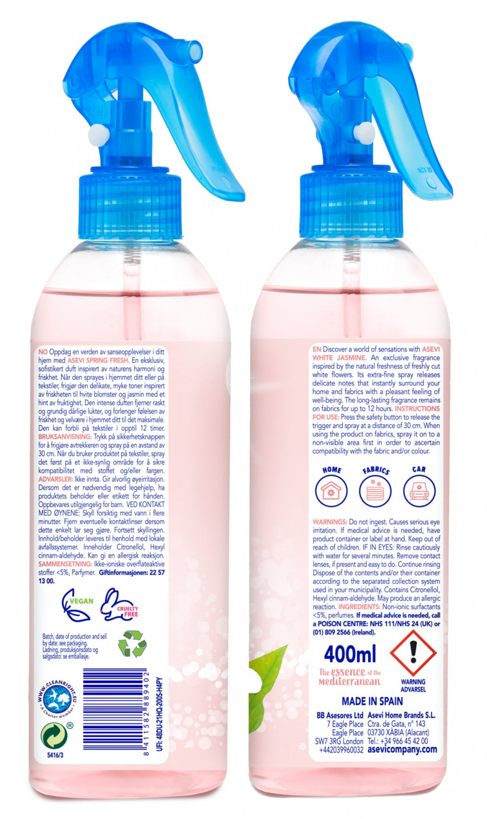 Asevi Air Freshener Spray 400ML Room And Fabric Freshener Jasmine - HOASE030