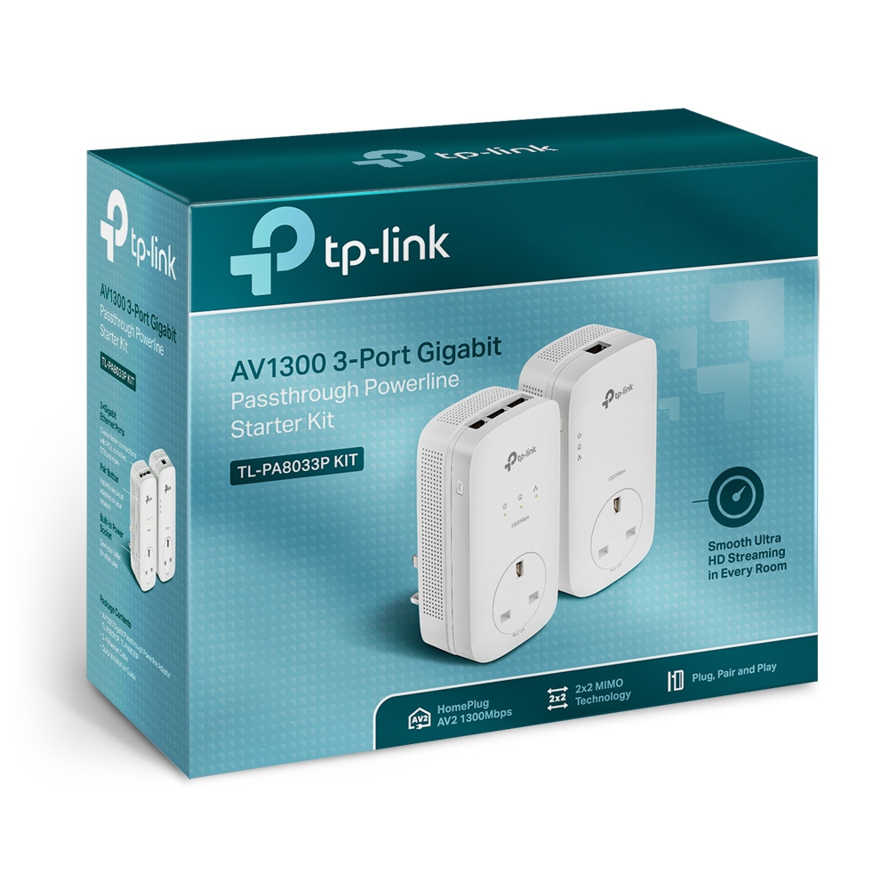 TP-Link AV1300 3-Port Gigabit Passthrough Powerline Starter Kit