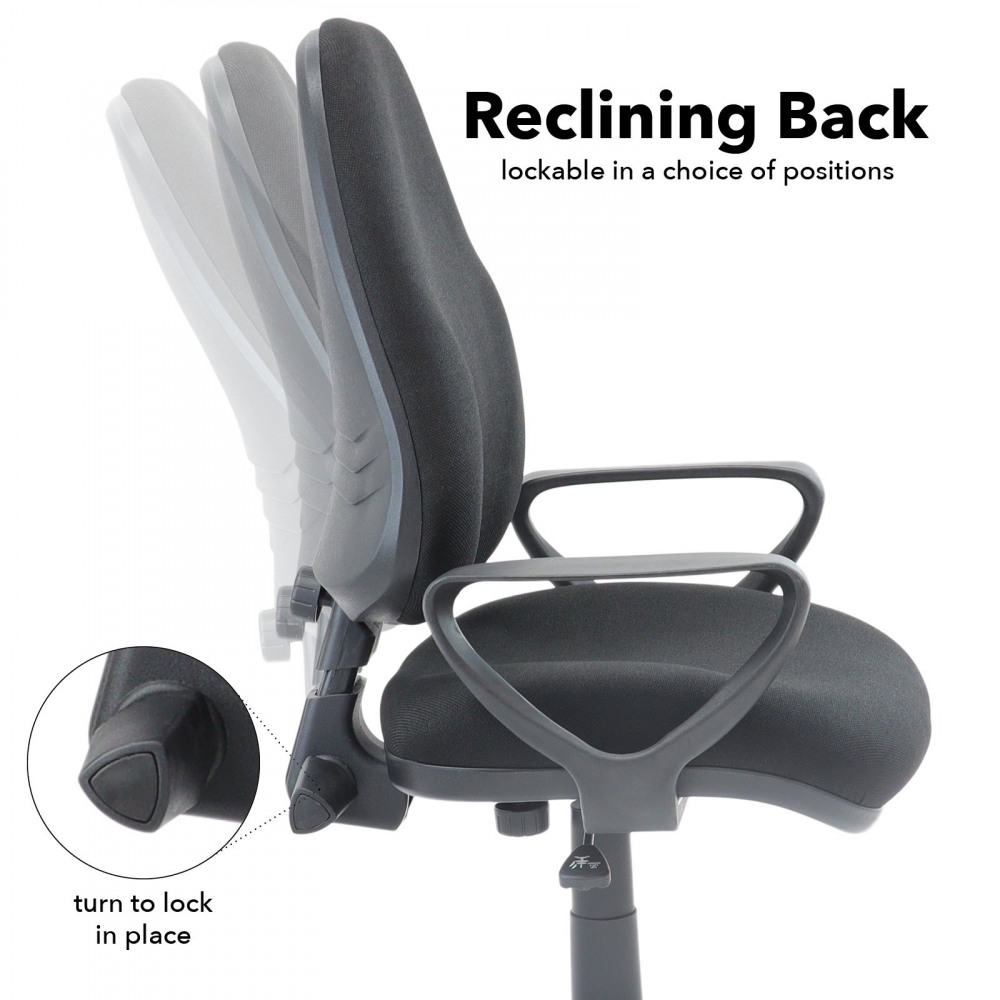Bilbao fabric operators chair with lumbar support and fixed arms - black