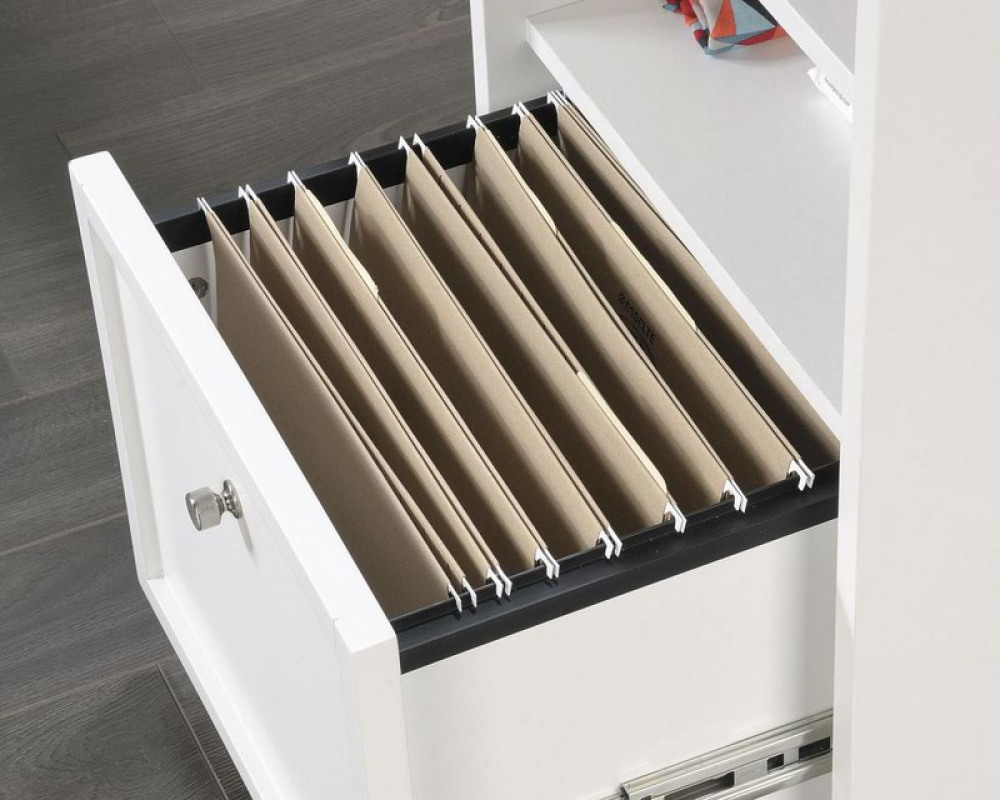 - Two drawers with full extension slides holds letter-size hanging files