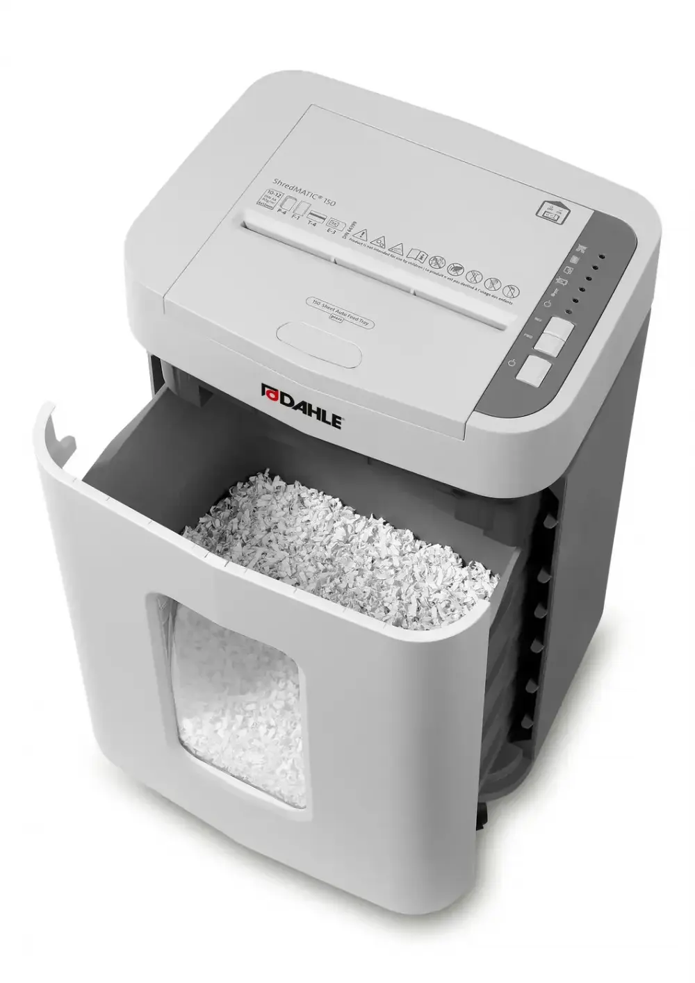 - Autofeed function shreds up to 150 sheets (80 gsm) in a single load