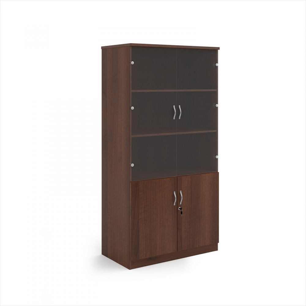 Deluxe combination unit with glass upper doors 2000mm high with 4 shelves - Walnut