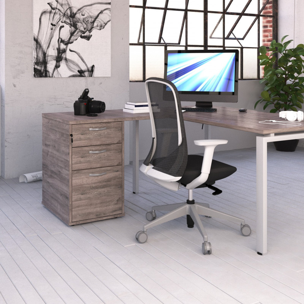 Desk high 3 drawer pedestal 600mm deep with 800mm flyover top - grey oak