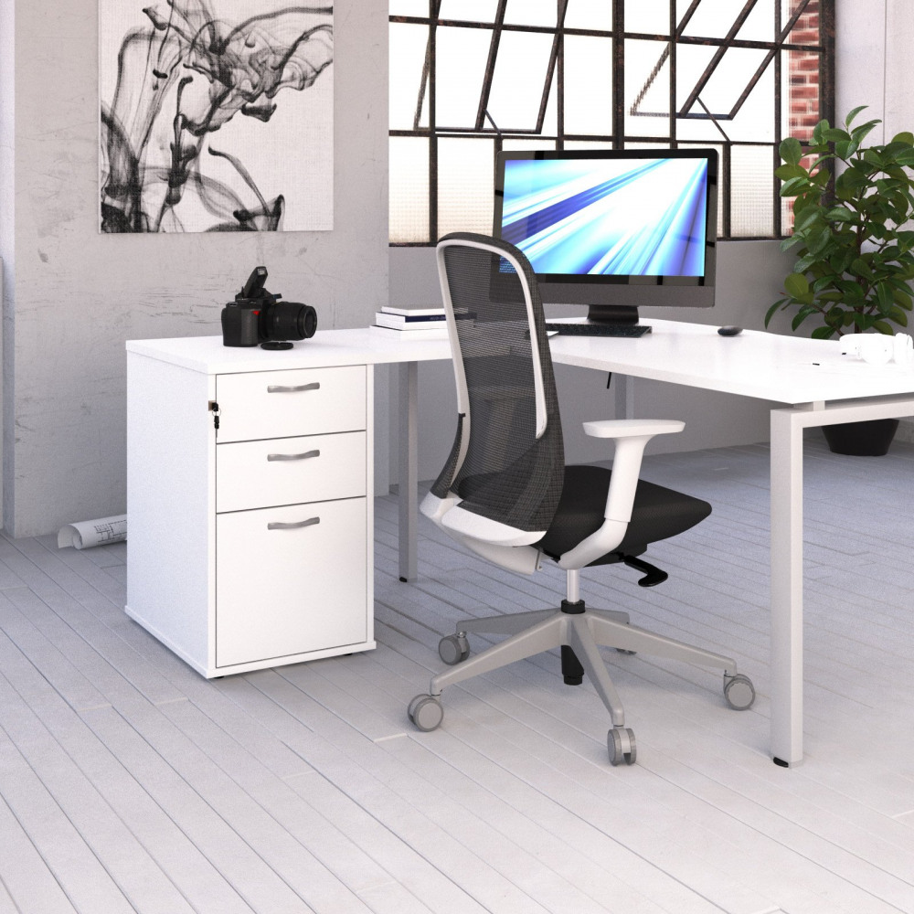 Desk high 3 drawer pedestal 600mm deep with 800mm flyover top - white