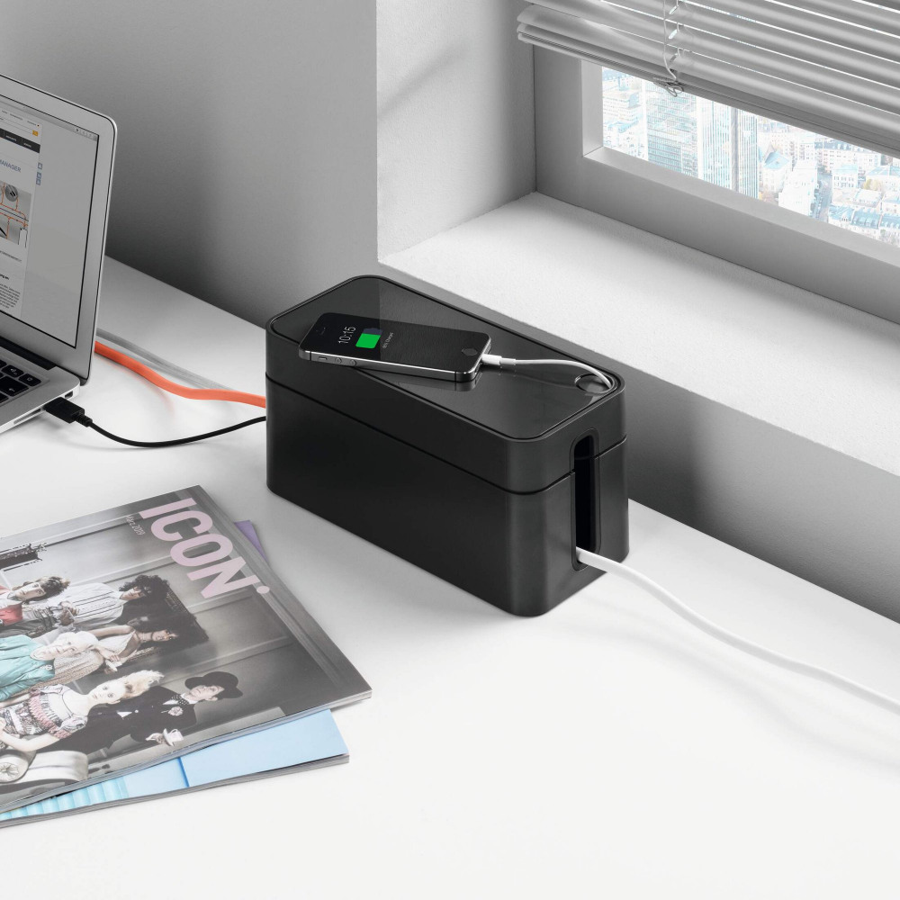 - CABLE PROTECTION - The box features a handy USB slot and 2 cable outlets, opposed for air circulation and rubberised to protect your leads