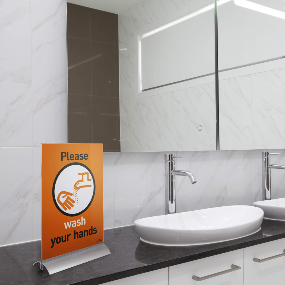Durable Presenter Sign and Literature Holder Desktop Acrylic with Metal Base A4 Clear - 858919