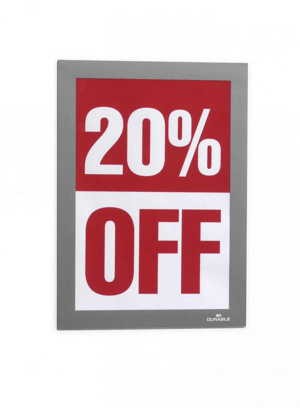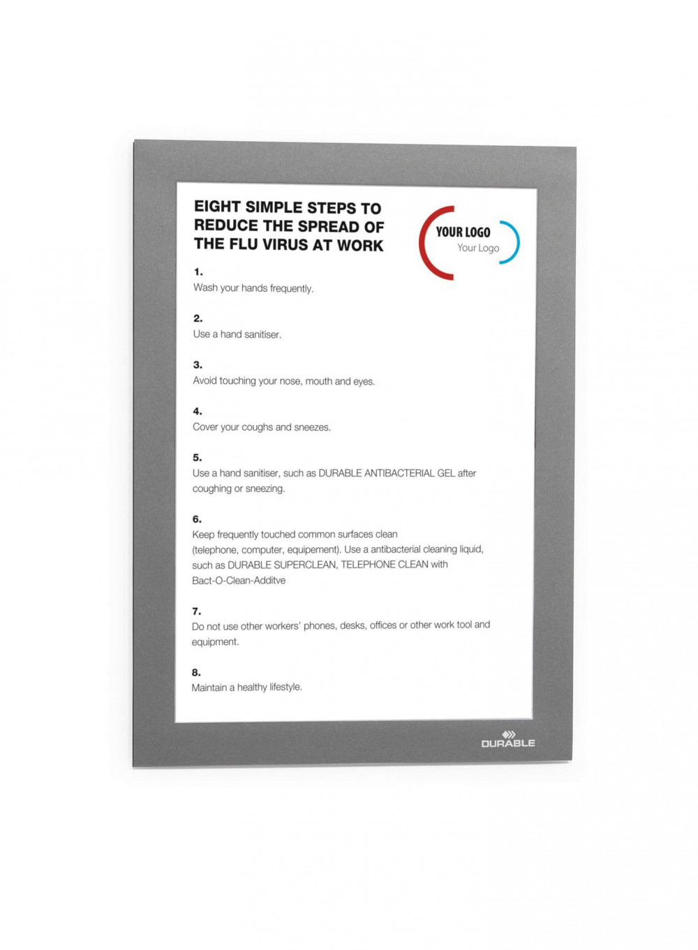 Durable DURAFRAME Self-Adhesive Sign & Document Holder with Magnetic Frame A5 Silver (Pack 2) - 487123