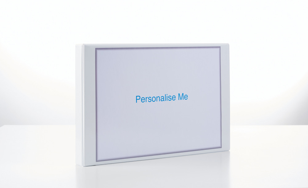 - Personalisable presentation binder made from strong polypropylene material for durability