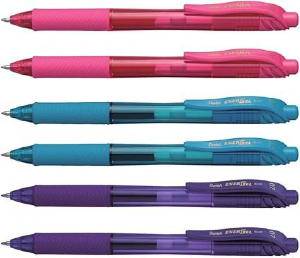 Pentel EnerGel X Tip Width 0.7mm Line Width 0.35mm Assorted Colours 2 Pink 2 Sky Blue 2 Violet in Cardboard Wallet (Pack 6) - YBL107/6-MARK