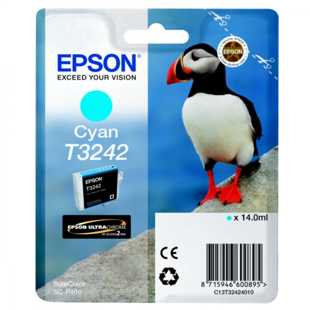 - Epson T3242 Puffin Cyan Standard Capacity Ink Cartridge 14ml - C13T32424010