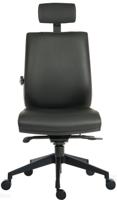 Teknik Office Ergo Plus Ergonomic Executive Operator PU Office Chair With Headrest and Apex Adjustable Arms and Ultra Base Black - Certified For 24 Ho