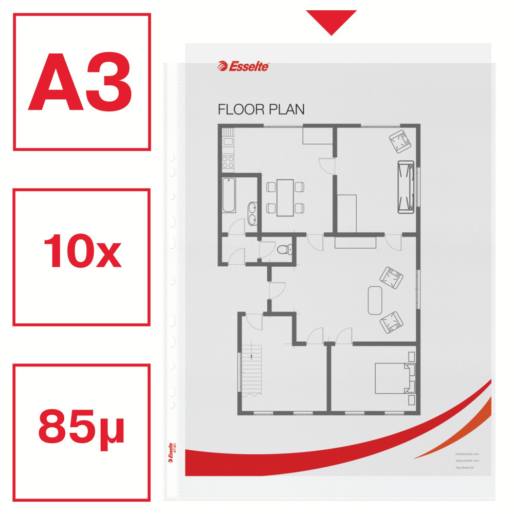 Esselte Punched Pocket Pocket Standard A3 Portrait Polypropylene 85 Micron (Pack 10) - 47181