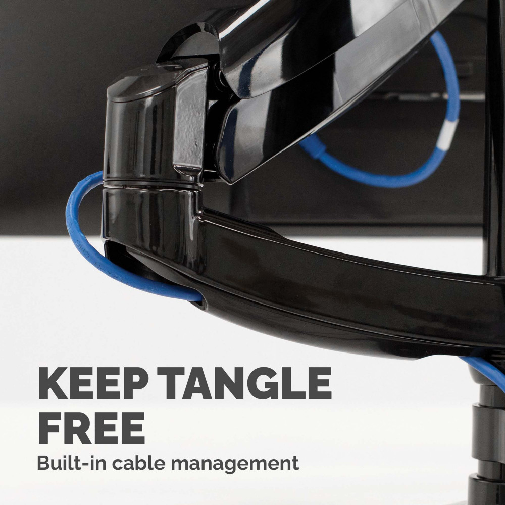 - EASILY ADJUST - This fully independent dual stacking monitor arm can be easily adjusted with its innovative gas spring adjustment allowing for effortless movement and a more comfortable workspace, reducing eye, neck and back strain