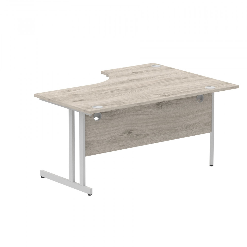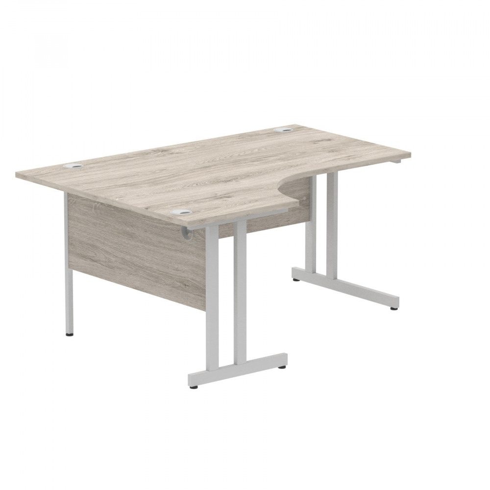Dynamic Impulse 1600mm Left Crescent Desk Grey Oak Top Silver Cable Managed Leg I003145