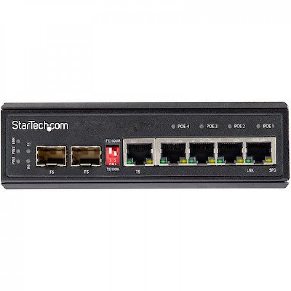StarTech.com Industrial 6 Port Gigabit Ethernet Switch - 4 PoE RJ45 +2 SFP Slots