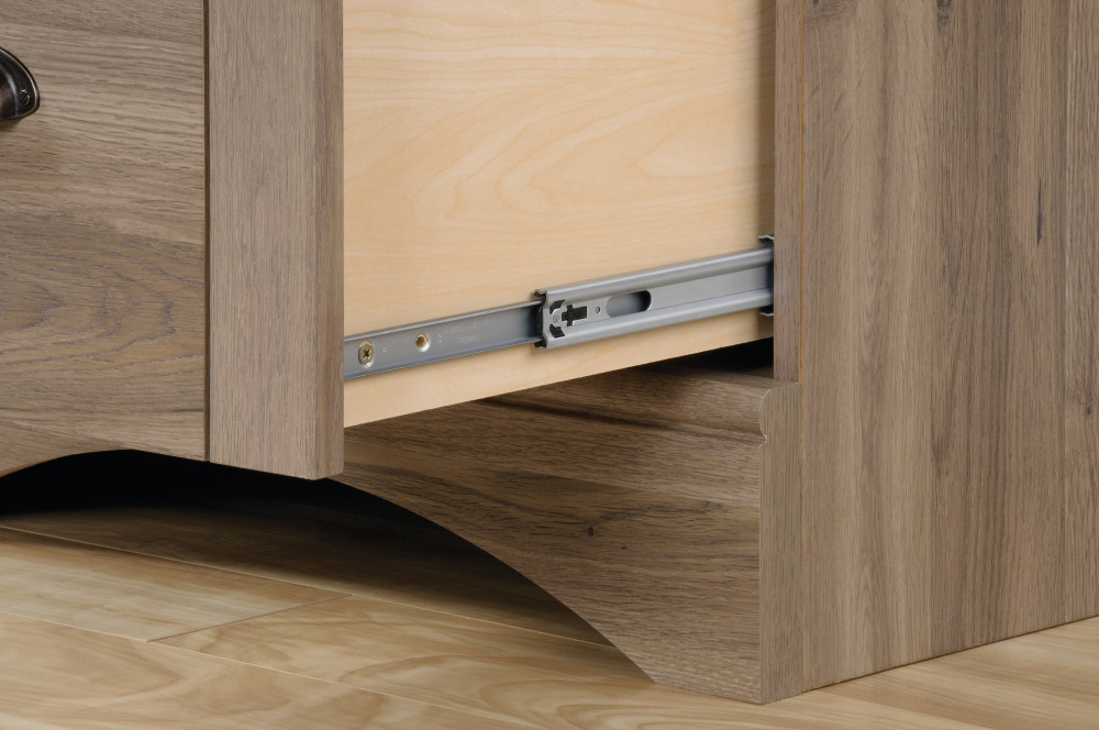 - Three drawers feature patented T-lock assembly system; lower drawer with full extension slides holds letter, legal or European size hanging files