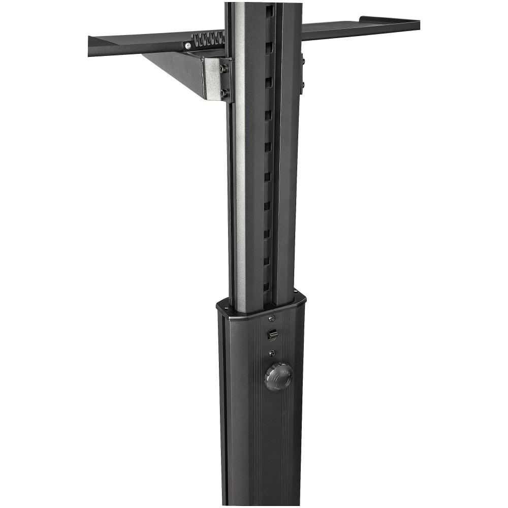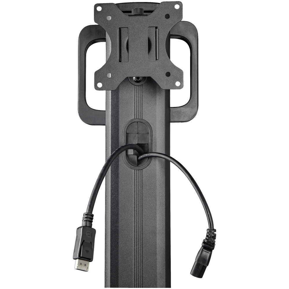 - HEIGHT ADJUSTABLE MONITOR MOUNT: Ergonomic rolling workstation cart with a telescopic column w/ VESA bracket fixed at the top that can be locked in 1.6â (4cm) increments from 50.4â (128cm) to 63â (160cm) from the floor : Display tilt +/-30°, 360° rotation