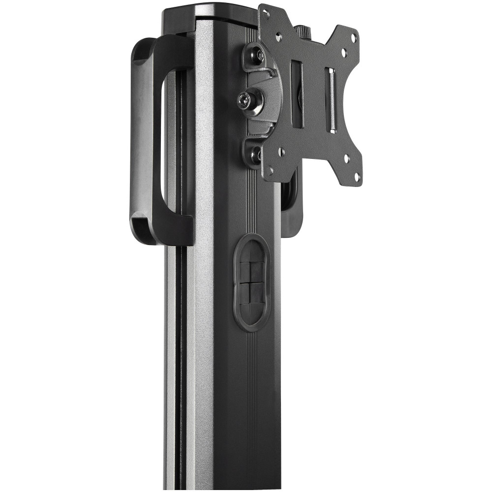 - CPU MOUNT: A desktop/PC tower holder with an adjustable width ranging from 4.8-8.3â (12.2cm-21.2cm) can be secured anywhere along the track of the lower column from 7.5-33.1â (19cm-84cm) from the floor : Two adjustable straps are incl. for added security