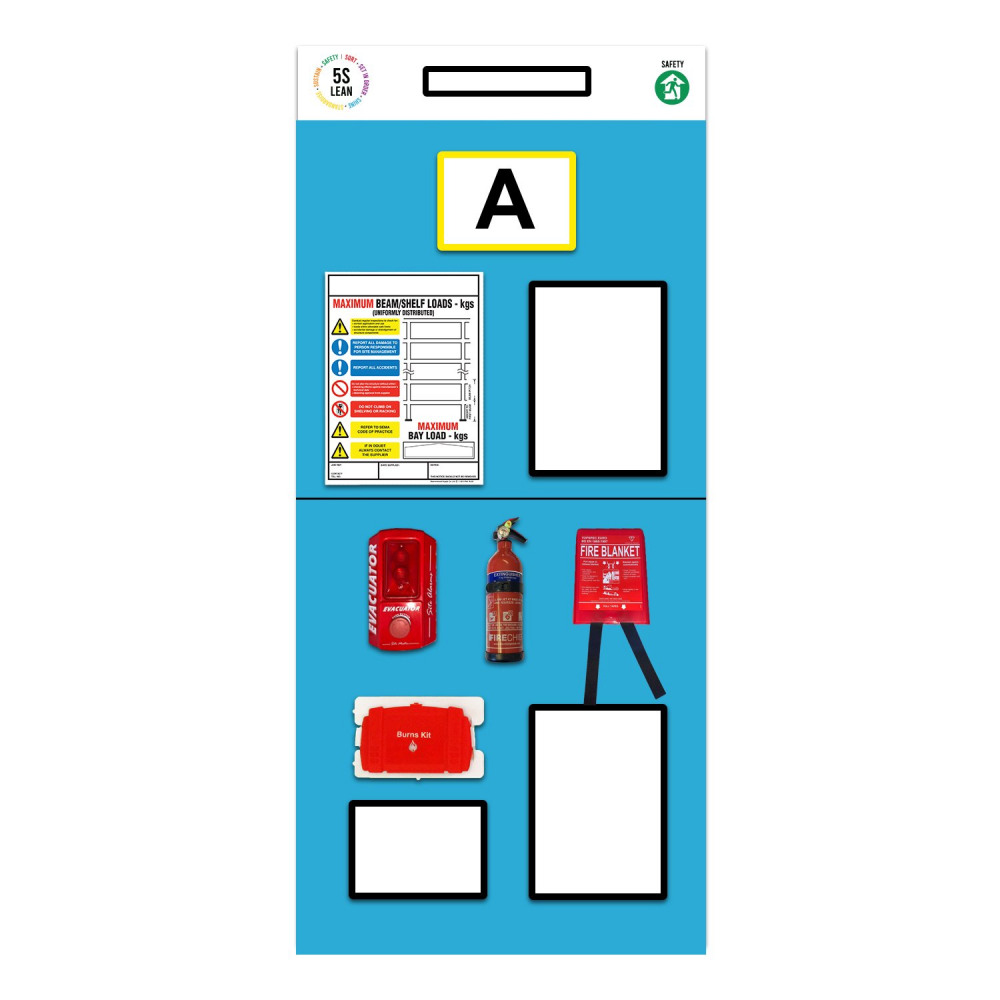 - Includes a weight load notice, aisle marker, small kit for burns, 1 kilo powder fire extinguisher, battery operated fire alarm, fire blanket and 2 A3 and 1 A4 frames4docs®