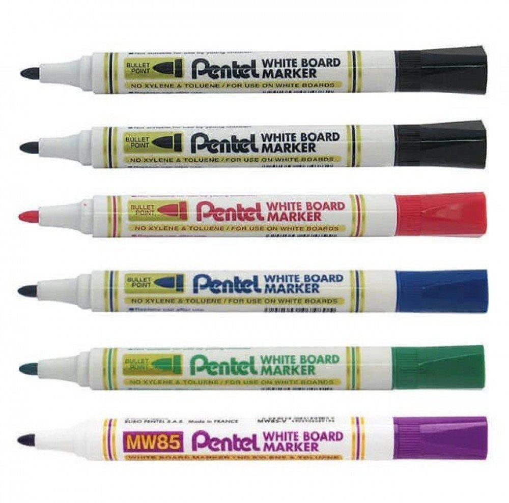 Pentel Whiteboard Marker Bullet Tip Assorted Colours (Pack 6) YMW85/6-M