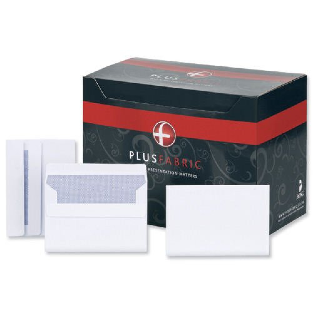 Plus Fabric Wallet Envelopes Self-Seal DL White 120gsm (Pack 500) H25470