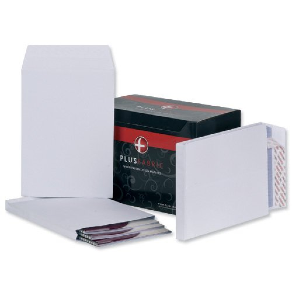 Plus Fabric Gusset Envelopes Peel & Seal Powertac C4x25mm White 120gsm (Pack 100) C26766
