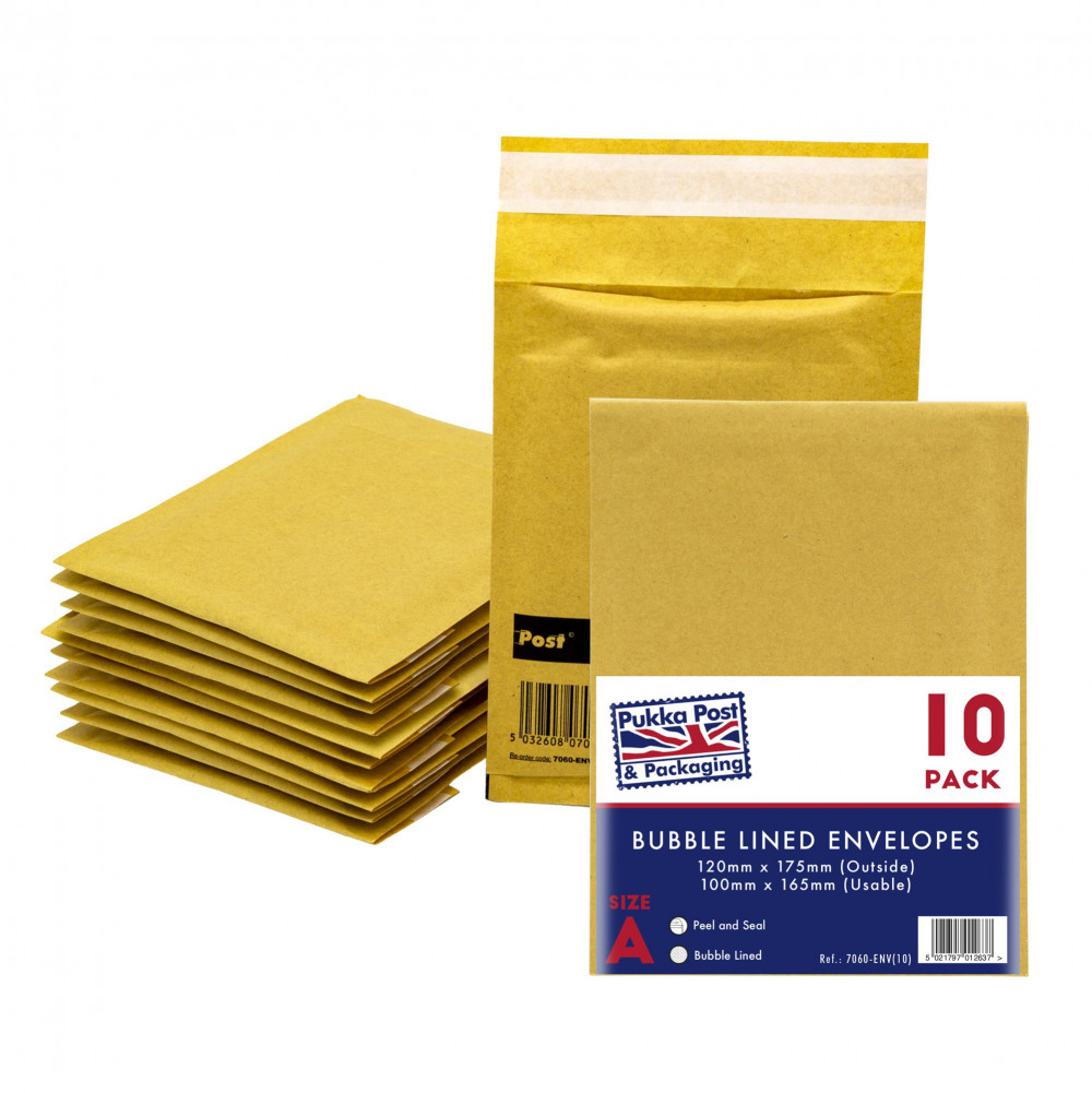 Pukka Post & Packaging Bubble Lined Envelopes Gold Peel and Seal Size A 120mmx175mm (Pack 10) - 7060-ENV(10)