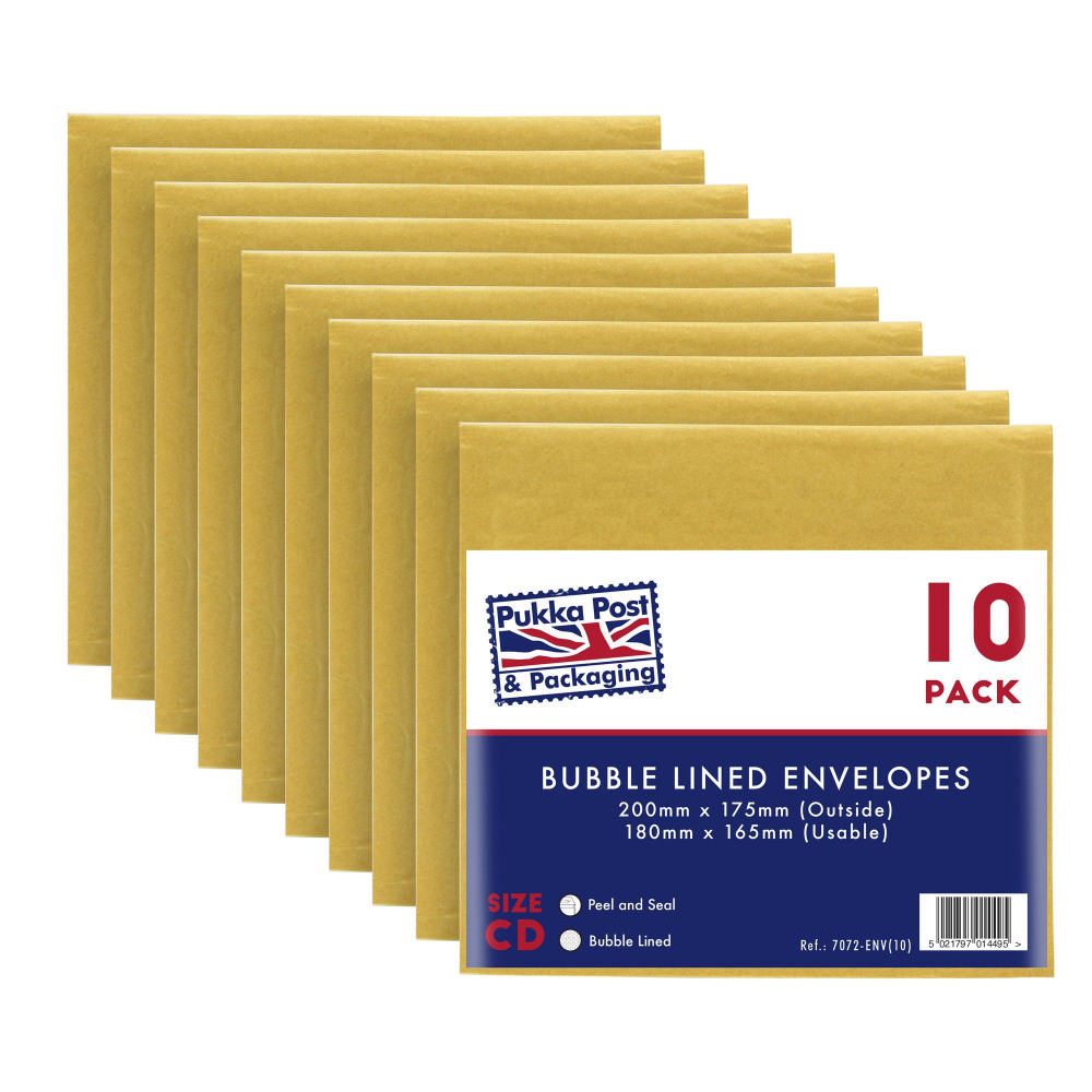 Pukka Post & Packaging Bubble Lined Envelopes Gold Peel and Seal Size CD 200mmx175mm (Pack 10) - 7072-ENV(10)
