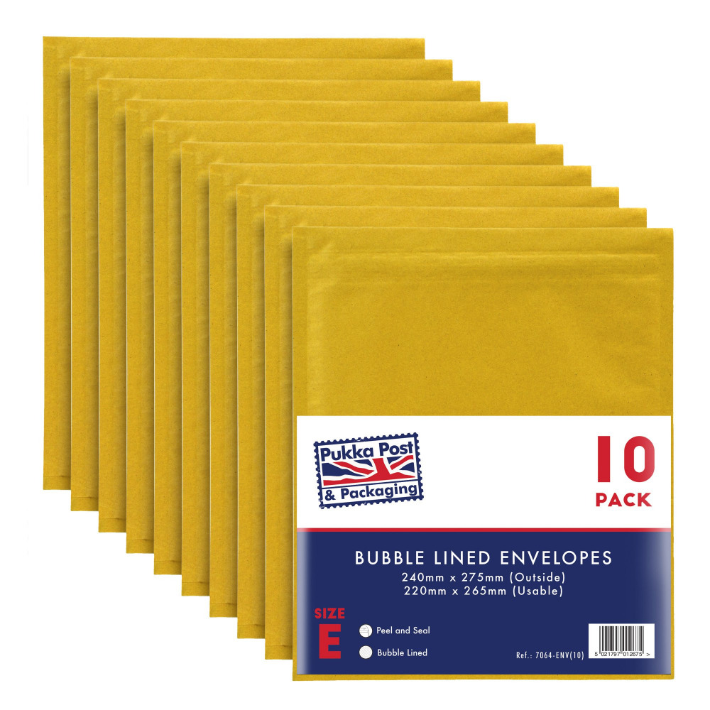 Pukka Post & Packaging Bubble Lined Envelopes Gold Peel and Seal Size E 240mmx275mm (Pack 10) - 7064-ENV(10)