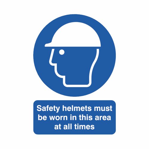 - Reads: 'Safety Helmets Must Be Worn in This Area at All Times