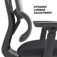 - The backrest features polymer mesh fabric and comfortably accommodates people of different body shapes