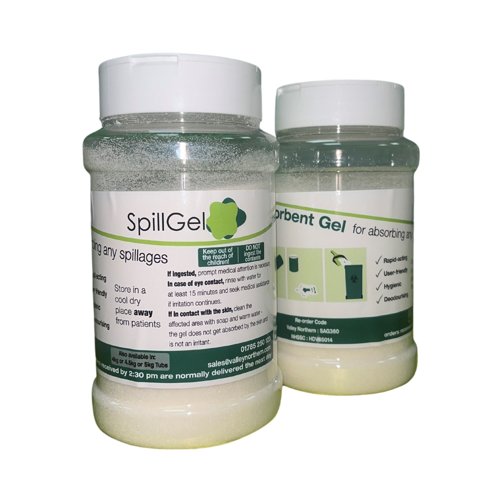 - SpillGel Powder is highly absorbent, with a capability of up to 100 times greater than clay-based products