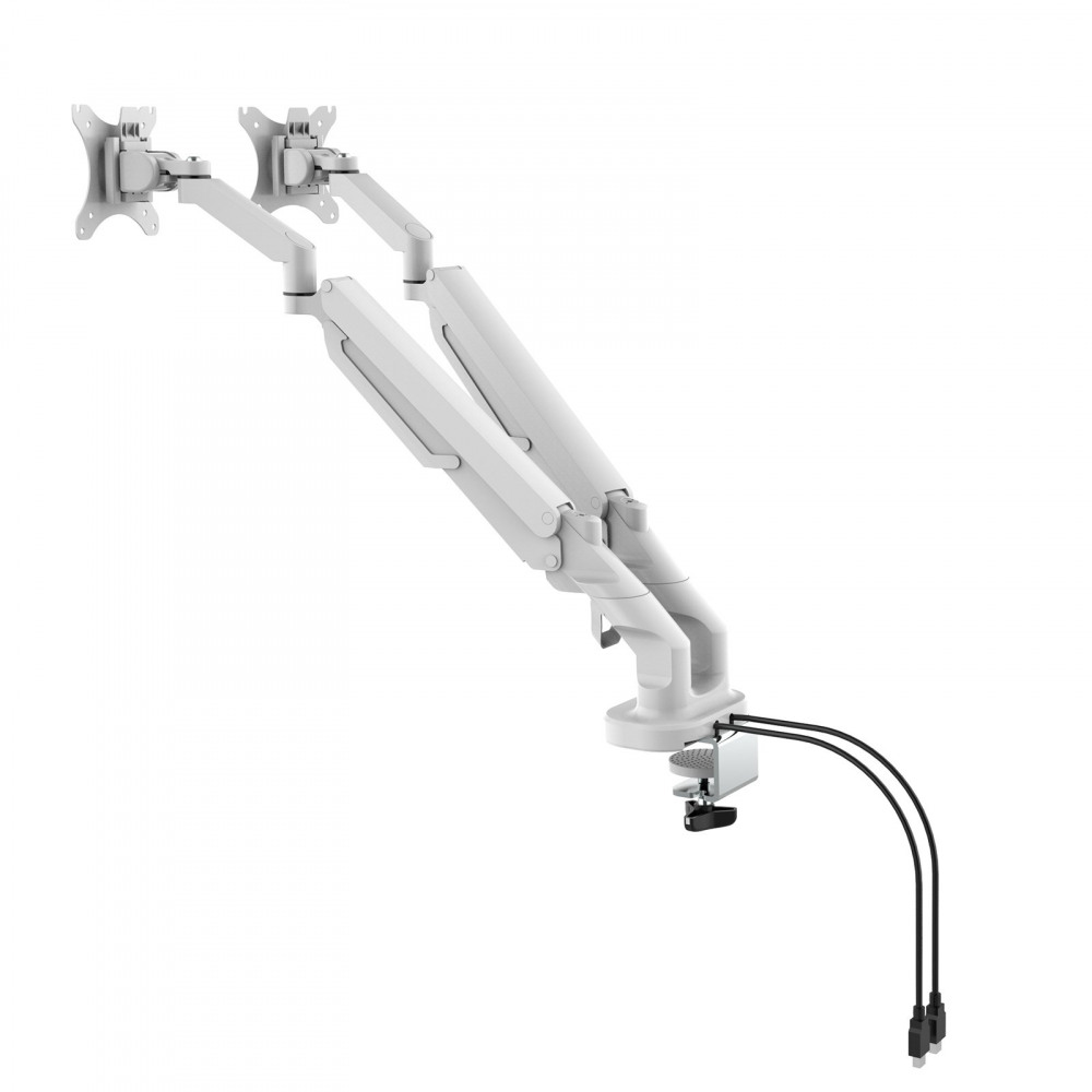 Triton gas lift space-saving double monitor arm - white