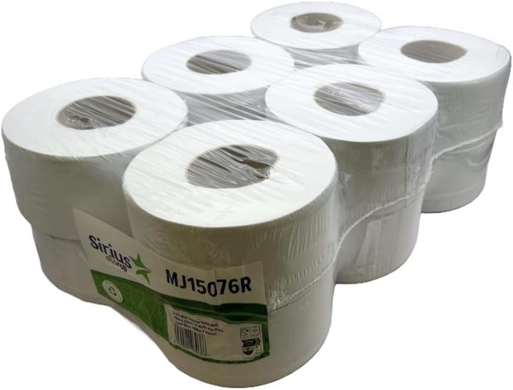 - ValueX Mini Jumbo Toilet Rolls 100% Recycled 2Ply 76mm Core L 150m White (Pack 12) - MJ15076R